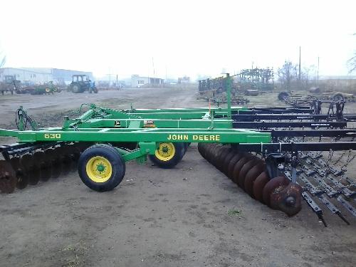 Дисковая Х-образная борона John Deere 630, ширина захвата 6, 5 м, 3-х секционная, прицепная. Диаметр дисков - 53 см.